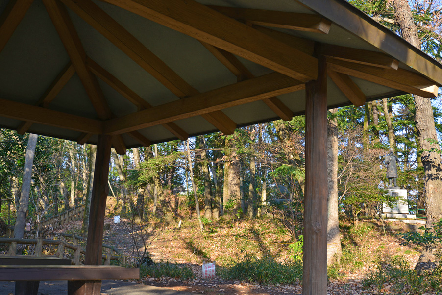 『柳淵橋』を渡り切った公園側の景色で丘上には展望台があります。北側の展望台の東屋はコンクリート製。