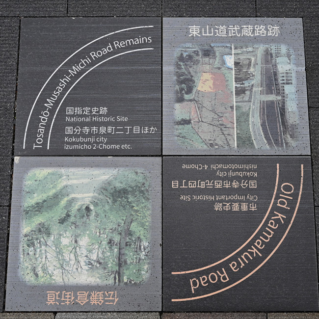 国分寺市内では、インフォメーションマンホールをいくつか目にしていましたが、ここ交通広場の西側を歩いていると床面にインフォメーションタイルを見つけました。見つけたのは3つで、2つは、観光関係で、七重塔のイメージの「国指定史跡 武蔵国分寺跡」と「国指定史跡 東山道武蔵路」&「伝鎌倉街道」でした。 武蔵野台地の植物 2022.5.12 トップへ