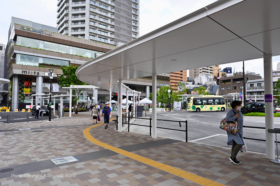 上の画像は、2022年5月12日の国分寺駅北口再開発事業の北口交通広場の様子です。 北口駅前交通広場北側からの風景 2022.5.12 トップへ ![]() 北側から見たの国分寺駅北口交通広場の風景で手前にあるのは駐輪場入口。2022.5.12 撮影:NIKKON Z6II+NIKKOR Z 14-30mmVR 14mm ISO 400 1/1600 f/9 0段 手持ち撮影 トリミング 北口駅前交通広場東側からの風景 2022.5.12 トップへ ![]() 国分寺駅北口交通広場東側の風景で西武バスが入っていました。 撮影:NIKKON Z6II+NIKKOR Z 14-30mmVR 14mm ISO 400 1/1000 f/9 0段 手持ち撮影 トリミング ![]() 国分寺駅北口交通広場東側の通路の風景。 撮影:NIKKON Z6II+NIKKOR Z 14-30mmVR 22.5mm ISO 400 1/1600 f/9 0段 手持ち撮影 トリミング 交通広場の南端 2022.5.12 トップへ ![]() 交通広場の南端には、インフォメーションボードとアナログ時計が高い位置に設置されています。 撮影:NIKKON Z6II+NIKKOR Z 14-30mmVR 14mm ISO 400 1/800 f/9 +1.0段 手持ち撮影 トリミング 交通広場の西端 2022.5.12 トップへ ![]() 交通広場の西端には、一時下車エリアがあります。 撮影:NIKKON Z6II+NIKKOR Z 14-30mmVR 14mm ISO 400 1/1600 f/9 -0.3段 手持ち撮影 トリミング ![]() 交通広場の西端の場車両出口には、高い位置に風力発電がありますが風があるのに停止していました。 撮影:NIKKON Z6II+NIKKOR Z 14-30mmVR 14mm ISO 400 1/2500 f/9 -0.3段 手持ち撮影 トリミング