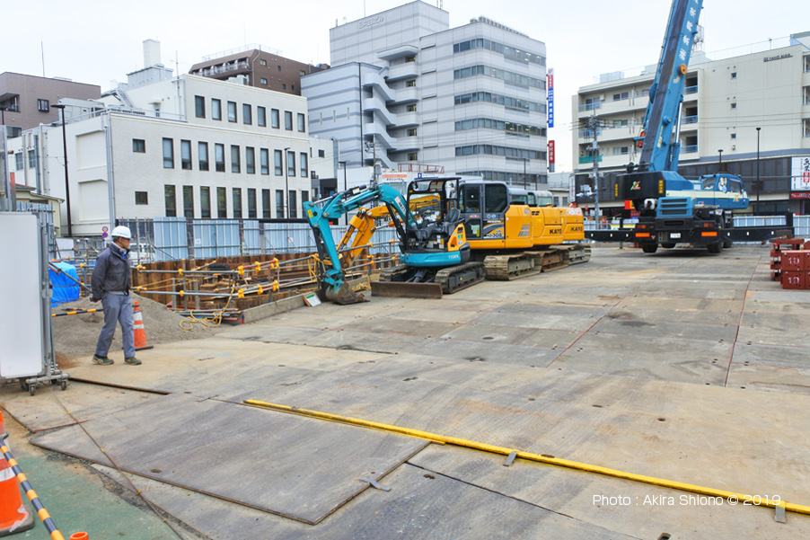 駅前広場工事前と現在の風景 トップへ 国分寺北口に駅前広場として確保された場所に、再開発ビルが完成するまでの間、駅前にあったパチンコ店が、仮店舗として営業していました。 建設中の北口駅前広場 19.1.15 トップへ ![]() EASTの西端で、右側が『WEST』で正面が国分寺駅のホーム側です。 ![]() 本町2丁目交差点付近の風景で左が北側でパチンコ店の仮店舗は撤去されていました。