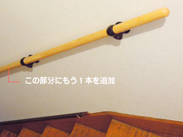 階段に手すりを設置 移 動: 手すり設置に使用する工具と材料 手すりの取り付け 長さが足りない時は2本で延長 長さが足りない時は2本で延長 階段手すり金具を安全な物に交換 リンク: 壁の収納を増やす棚 壁の収納を増やす棚 階段に手すりを設置 コーナー棚の設置 バルコニーにサンシェード