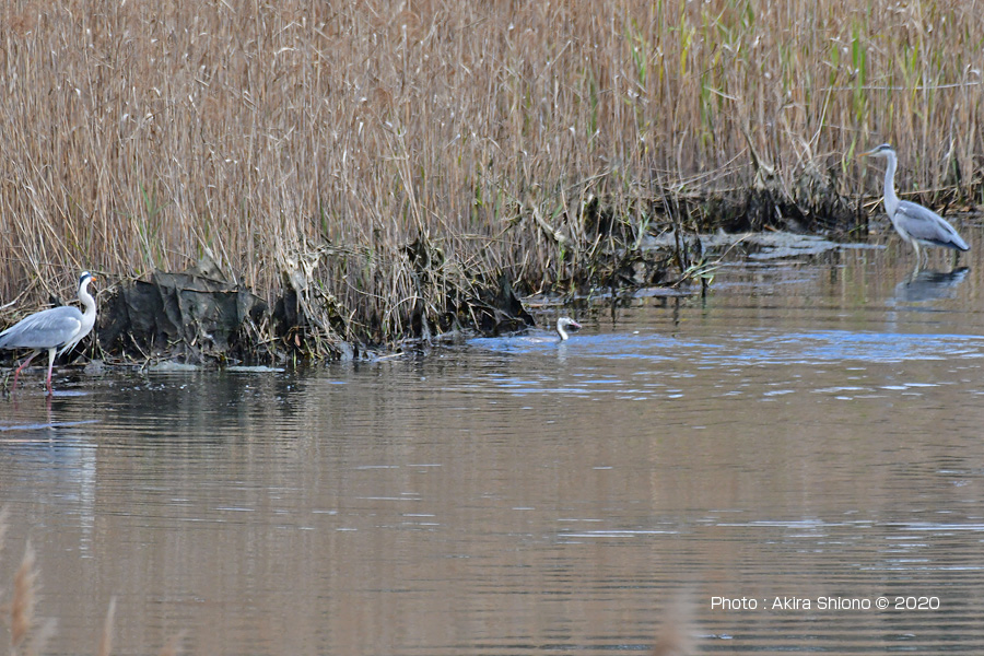 東京港野鳥公園の東京湾の羽田空港近くの前浜干潟はかなり広い幅の入江です。北の奥あたりは、対岸まで約200mほどあります。東京湾との接続点は、若洲海浜公園に繋がる、東京港臨海道路の城南大橋が架かっています。この公園は大田市場の隣にあり、南には羽田空港があり頻繁に旅客機が離着陸しています。 ![]() 東京港野鳥公園の3月上旬の前浜入江の逆光の50m先のカンムリカイツブリ NIKON Z9+TC-2.0+Z400mmVR f/16 1200mm ISO 2000 1/2000 +0.3段 トリミング5倍