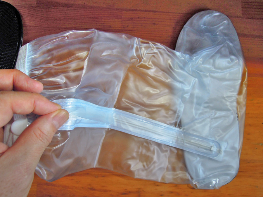 XLサイズとMサイズのソールの比較。内側のファスナーには、雨蓋がついています。