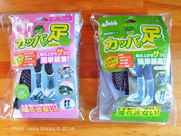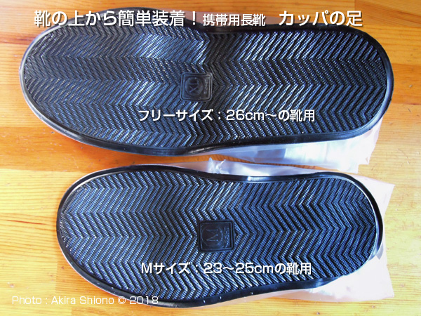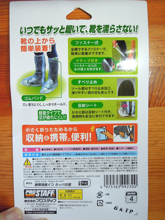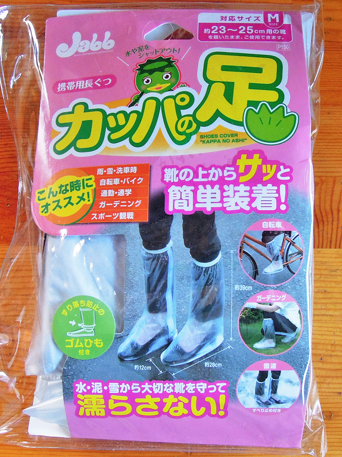 ここにあるのは、PRO STAFFの「カッパの足」です。最近女性でもOKのMサイズが追加されました。これでフリーサイズ(XL)との2種になりました。