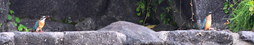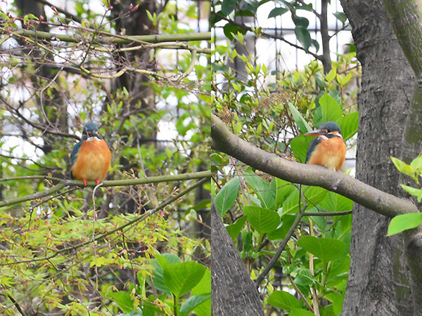 左ー武蔵の池の中にある島の止まり木に留りましたが、止まり木と欄干を往復して飛んでいました。 2羽のカワセミ トップへ ![]() 4月に撮影した親と思われるつがいのカワセミのペアで左がオスで右がメス
