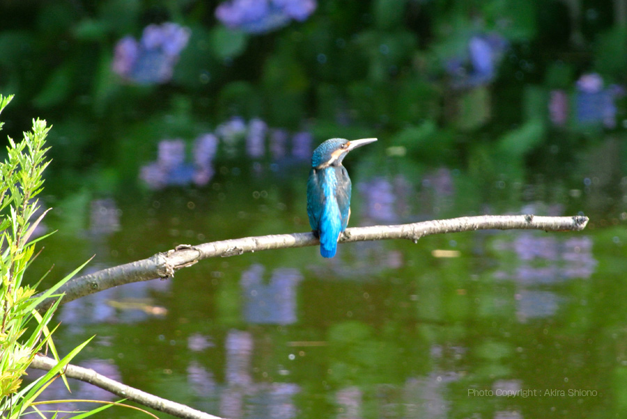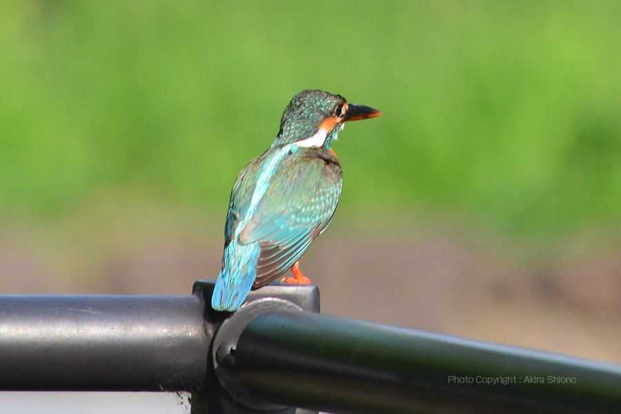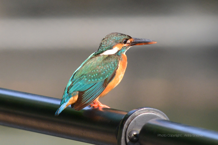 このカワセミは警戒心が無いのか幼鳥と思われます。運良く10mくらい先の欄干にとまってくれました。