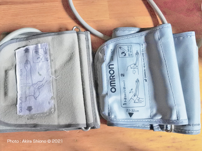 長期間の使用で上腕式用腕帯が、致命的な故障をしてしまった場合は、交換部品を取り寄せします。今回は本体は全く問題なく、上腕血圧帯を止める為のベルクロ(マジックテープ)が弱くなり、計測のたびに圧力が上がるとバリバリ!と音を立てて剥がれ計測ができなくなってしまったからです。補充部品としてメーカーから製品に合った「電子血圧計 上腕式用 交換腕帯」が販売されていますので、適応機種と腕周をチックの上購入されるといいと思います。