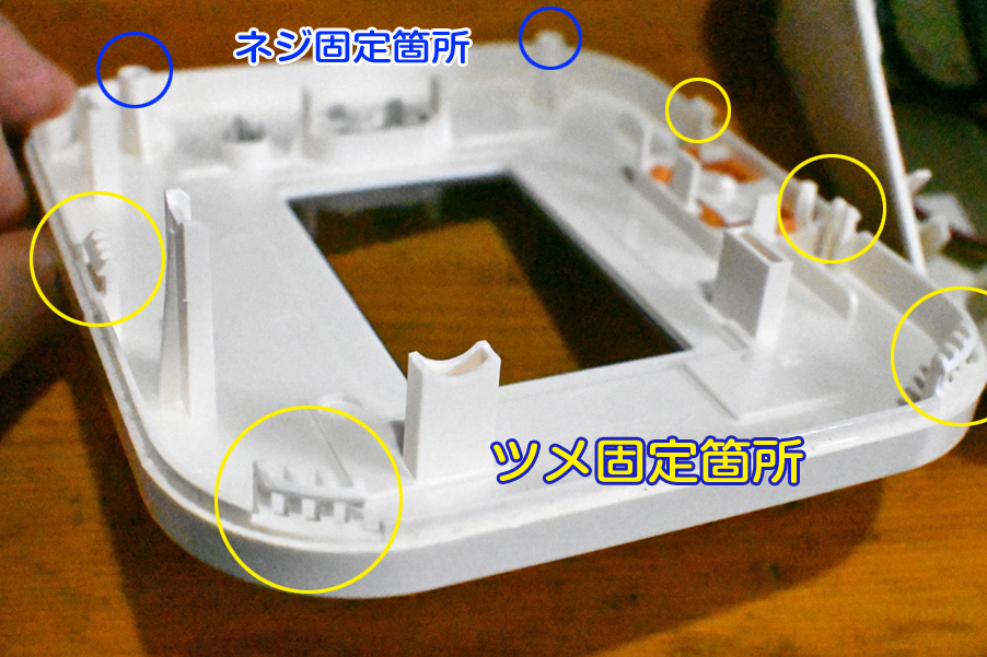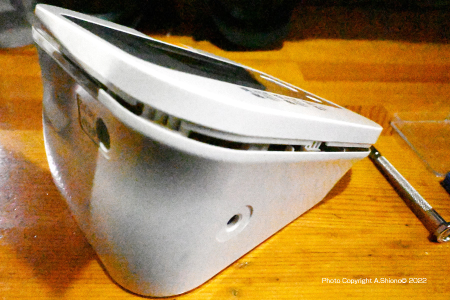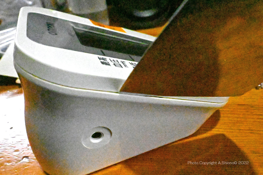 血圧計は、長期間の使用で磨耗していく部品があります。意外に最初にダメになったのは、腕に巻き血圧を計測する「腕帯」でした。これは計測時に毎回面ファスナーを脱着していると、この部分がへたってきて、この部分のループとフック構造の内フックが伸びてきて固定が弱くなってきます。幸いこの腕帯は部品として販売されていますので安心です。 血圧計本体の分解 トップへ