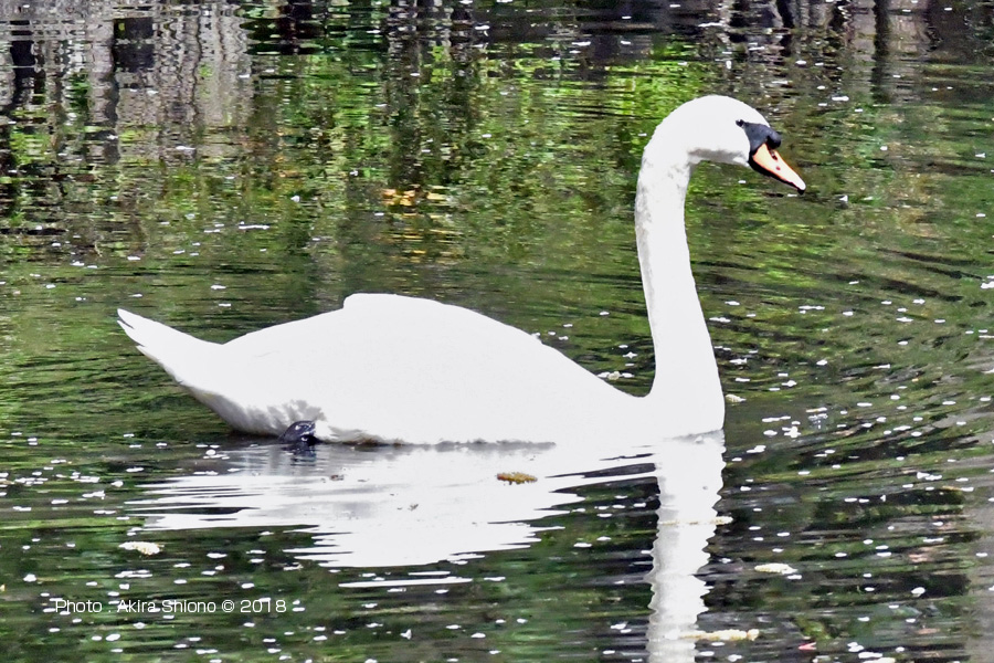コブハクチョウはカモ目カモ科のハクチョウ属で、ハクチョウは井の頭恩師公園の大きな池などで見ることがあります。この写真のハクチョウは「コブハクチョウ」で日立製作所の中央研究所の敷地内にある大池に棲んでいる水鳥です。ここ国分寺では大きな池があるのがこの大池のみですので、一般の方は年に2回の庭園開放日でしか目にすることが出来ません。 コブハクチョウとハクチョウの違い トップへ このコブハクチョウを遠くから見ると、ハクチョウがいると認識しますが実は比べて見ると別の鳥だということがわかります。ご覧の通りハクチョウが、クチバシ先の色が黒で元の色が山吹色になっています。それに対してコブハクチョウは。クチバシの先部分が赤いオレンジでクチバシの上部の根元が黒になっています。また名前にある様に黒い元部分上にコブがあるのがわかります。