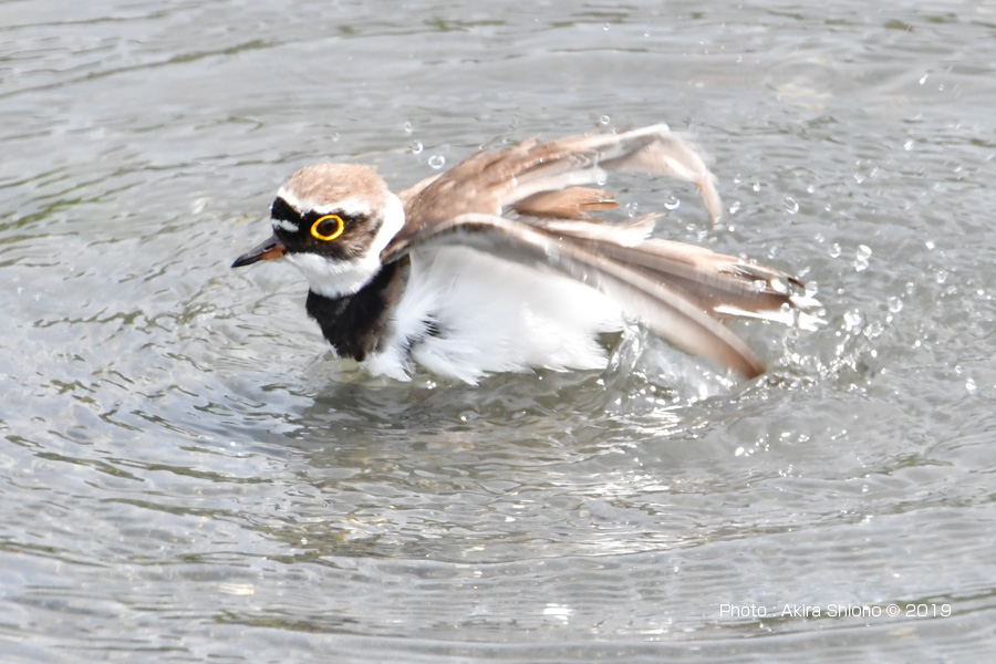 翼で水面を叩き水しぶきが飛び散ります。 撮影:NIKON D500+TAMRON SP150-600mm f5-6.3 手持ち撮影 干潟で餌を探すコチドリ トップへ