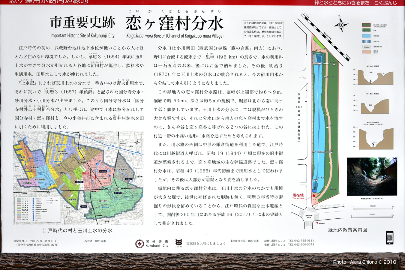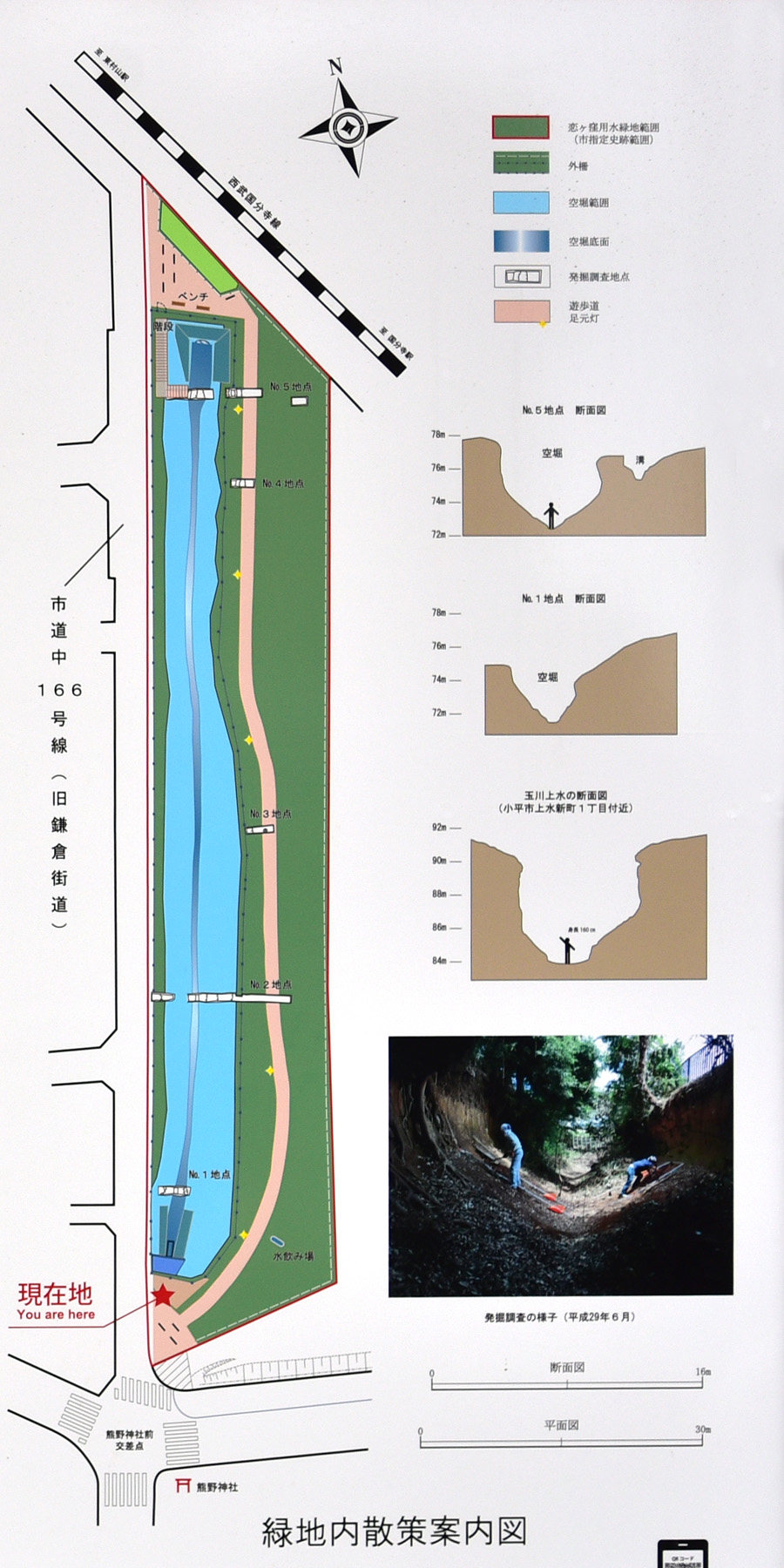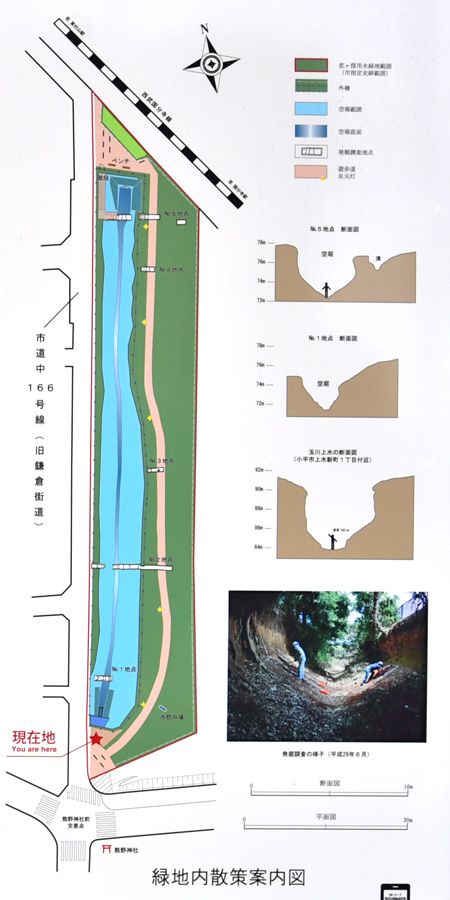 熊野神社北の「恋ヶ窪用水路周辺緑地保全地域」の看板(1350x900pixに拡大できます)と地図部分の拡大図(1150x900pixに拡大できます) 恋ヶ窪用水路跡東の遊歩道 トップへ