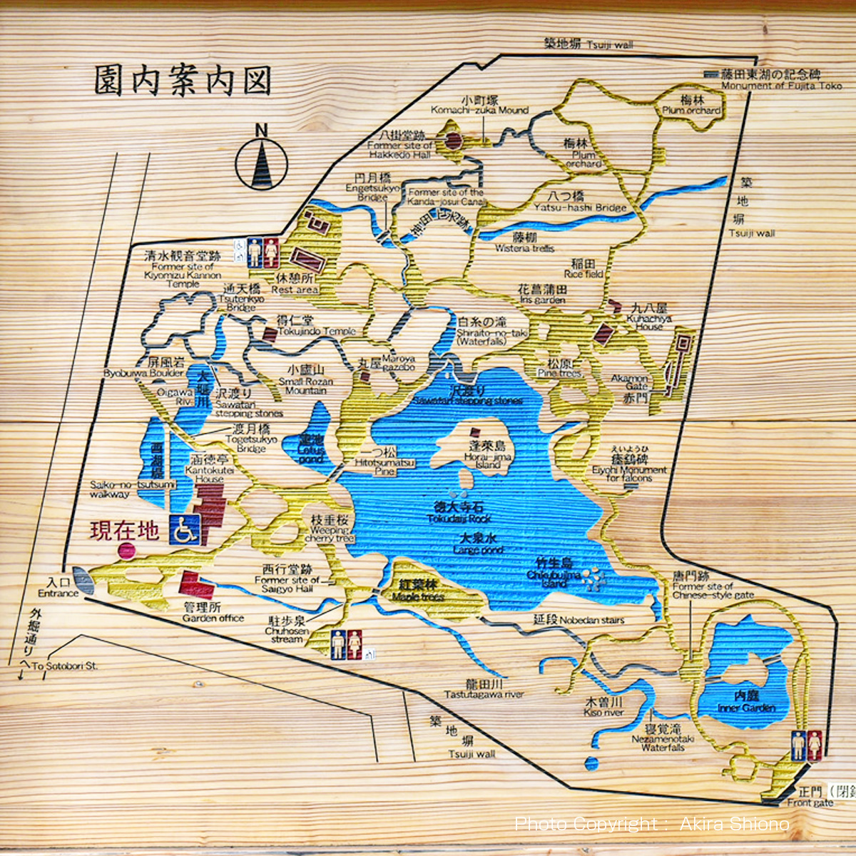 特別史跡と特別名勝の小石川後楽園 トップへ 【小石川後楽園の歴史】江戸時代初期、寛永六年(1629)に水戸徳川家の祖である頼房が、江戸の屋敷の後園として造った物で、二代目藩主の光圀の代に完成した庭園です、光圀は造園に際し、明の儒者である朱舜水(しゅしゅんすい)の意見をとり入れ、中国の教え「(士はまさに)天下の憂いに先だって憂い、天下の楽しみに後(おく)れて楽しむ」から後楽園と名づけました。 庭園は池を中心にした「回遊式泉水庭園」になっており、随所に中国の名所の名前をつけた景観を配し、中国趣味豊かなものになっています。そして、これらによって湖・山・川・田園などの景観が巧みに表現されています。 この池は元々小石川大地の先端にあり、神田上水の分流を引き入れ造園されました。また光圀の儒学思想の下に造園されおり、明るく開放的な六義園と好対照をなしています。 なお、後楽園は昭和二十七年三月、国の文化財保護法により特別史跡及び特別名勝に指定されています。特別史跡と特別名勝の二重指定を受けているのは、都立公園では浜離宮とここの二つだけです。全国でも京都の鹿苑寺(金閣寺)、慈照寺(銀閣寺)、醍醐寺三宝院の五ヶ所だけ出す。 東京都 小石川後楽園 木製看板:特別史跡 特別名勝 小石川後楽園より 苑内散策 トップへ
