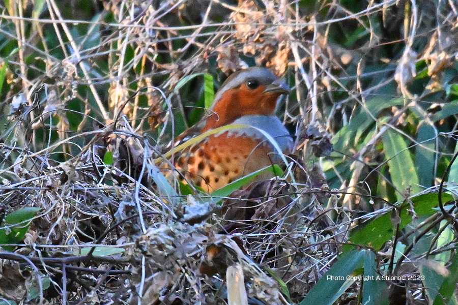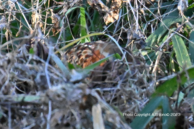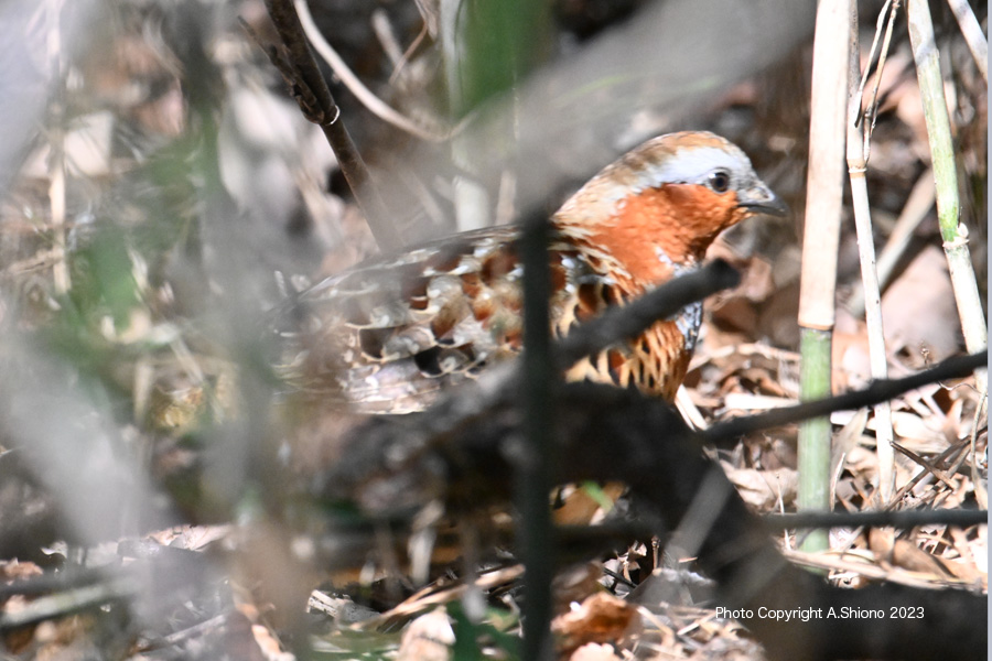 藪の中で動く野鳥を初めて発見できましたが、コジュケイは主に安全な薮の様な場所で昆虫や植物の葉や種を食べるといわれています。