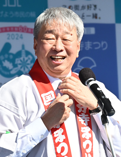 今年も姉妹都市の新潟県佐渡市に加え、友好都市の長野県飯山市の催しや模擬店の出店があり開場が盛り上がりました。ちなみに、下の画像は、国分寺市長、姉妹都市の市長、友好都市の市長の画像とお名前です。 姉妹都市:佐渡市と友好都市:飯山市 トップへ 農業まつり トップへ