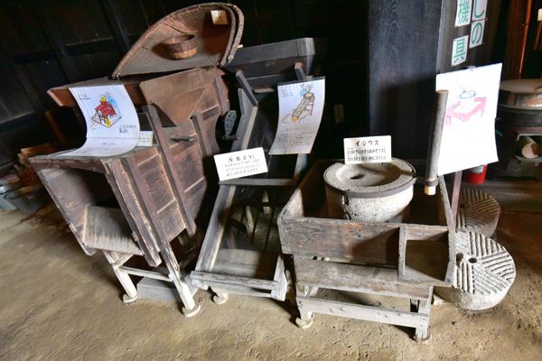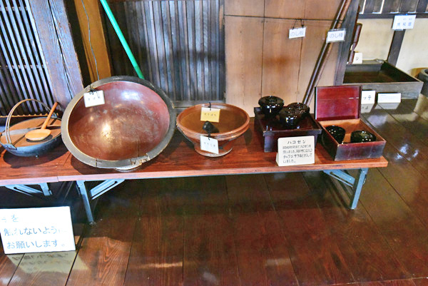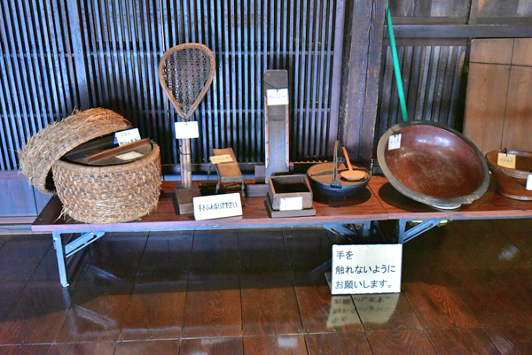![]() 小林家の古民家内には、当時使われたと思われる道具類が展示されています。