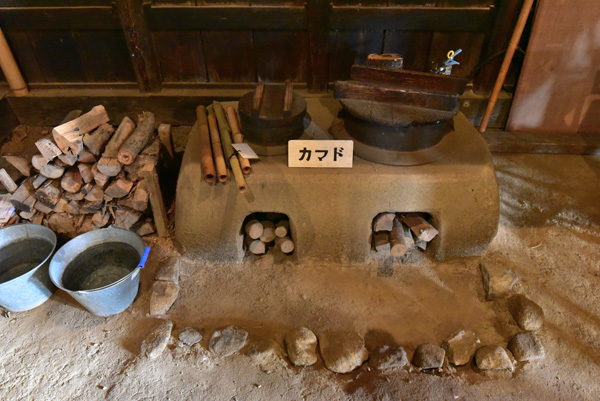 ![]() 当時のおかって(台所)は、燃料は薪をカマドに焼べて調理します。