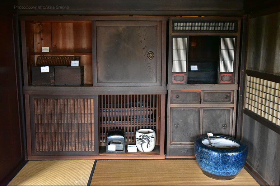 ![]() 当時、生活に使われていた、台所の道具類も展示されています。