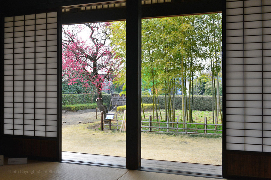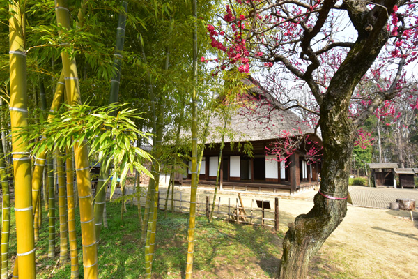 ![]() 古民家の西側には竹林があり、3月頃には紅梅が彩りを添える