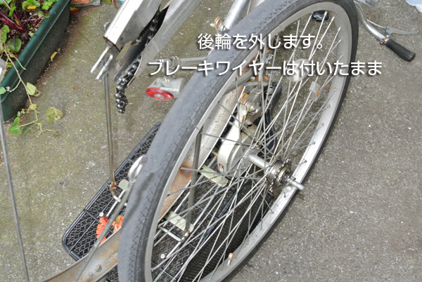 後ろのブレーキステーのネジを取り外し後輪をリアステーから外します。 内装3段変速車輪を装着する ▲top