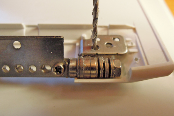![]() ネジで固定してあった部分の2箇所に穴をあけます。