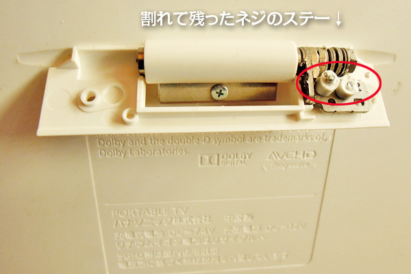防水ポータブルテレビME7000のスタンドの修理 リンク: DIGAモニター(UN-DM10C1) プライベートビエラUN-JD10T3 水場での使用 DLNでDIGAを利用 テレビでネット DIGAモニター(UN-DM10C1) プライベートビエラUN-JD10T3 ME7000 アンテナジャックの修理 メーカー製品情報ページ: ジャンプ: 工具をつくる スタンドを分解 スタンドを加工 スタンド修理 まとめパナソニックME7000のスタンド部分が割れる トップへ