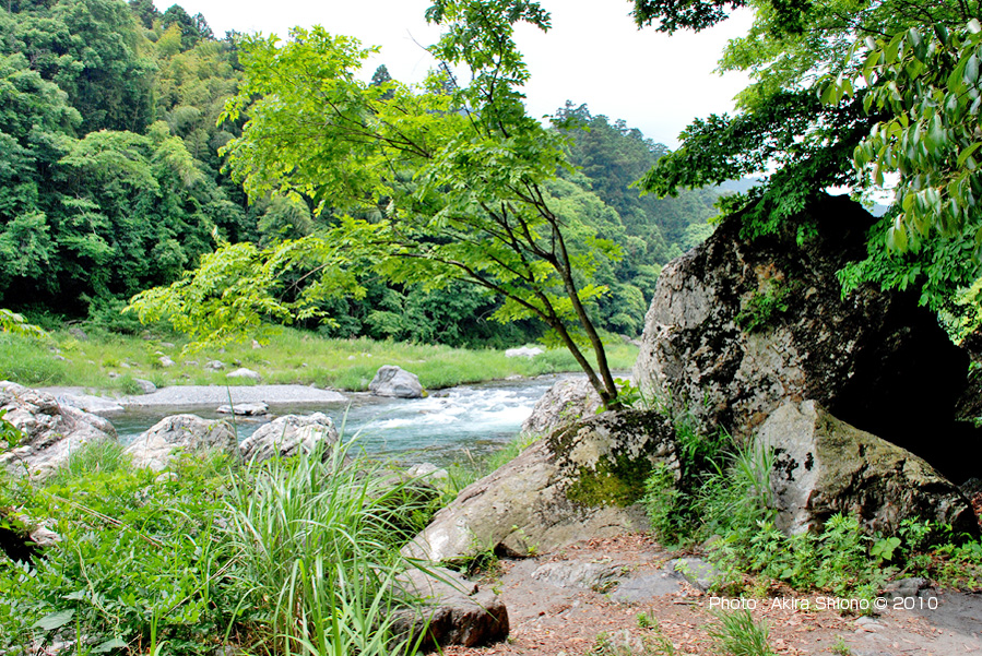 御岳渓谷遊歩道/JR青梅線 御岳 移 動: 周辺の見どころ 御岳渓谷遊歩道マップ 自然豊かな清流の御岳渓谷遊歩道 ■軍畑〜澤乃井園 御岳橋東 御岳駅南側の遊歩道 北遊歩道/御岳橋西 南遊歩道/御岳橋西 鵜の瀬橋東方面 リンク: 奥多摩駅と周辺(7p) 白丸駅周辺(3p) 鳩ノ巣駅周辺(7p) 御岳駅周辺(7p) 沢井駅周辺(7p) 軍畑駅周辺(4p) 御岳渓谷遊歩道全域 5月の御岳渓谷遊歩道の軍畑〜楓橋所 御岳発電所〜せせらぎの里美術館 新緑の鵜の瀬橋から御岳小橋 澤井から鵜の瀬橋 新緑と紅葉の澤井〜御岳発電所 1月の御岳発電所から御岳小橋 青梅 軍畑/楓橋下流の2月と野鳥 12月の澤井/楓橋周辺と野鳥〔写真をクリックすると拡大されます 戻るボタンで戻ります〕 御岳渓谷遊歩道 自然豊かな清流の御岳渓谷遊歩道トップへ 御岳渓谷遊歩道は、軍畑駅の北側の多摩川の岸(左岸)に続く遊歩道です。入口は軍畑大橋の北側の東西に伸びる青梅街道の歩道の保護ネットが切れた場所にあります。ここから川井の手前のせせらぎの里美術館まで続きます。途中の寒山寺から南岸にも遊歩道が川を挟むように鵜の瀬橋先の御岳トンネルまでありましたが、現在は危険なために通行止めになっています。しかし、鵜の瀬橋から御岳手前までは通れるようになっています。御岳小橋から先は御岳発電所まで続きます。 ■軍畑〜澤乃井園 トップへ 電車利用で軍畑で下車された方のコースです。青梅街道沿いの入口から入ると急な下り坂と階段で遊歩道へ接続しています。軍畑あたりの遊歩道のある場所は元々は個人(おそらく澤井酒造)の所有地です。人通りも少なく、巨岩、急流と渓谷の景色を味わうことが出来ます。この景色を楽しめるのも土地所有者のおかげですので、是非とも澤乃井ガーデンで食事・休憩をしていってください。 上の画像は入口〜楓橋のほぼ中間地点で、この先は巨岩、淵が続きさらに上流は、砂利の河原へ変化します。この先は、一旦浅く広い瀬になり下の画像にある「楓橋」へと繋がります。下の楓橋は遊歩道は一旦楓橋の下を潜り、軍畑方向へと繋がります。 御岳駅周辺の御岳渓谷遊歩道/御岳橋東 トップへ