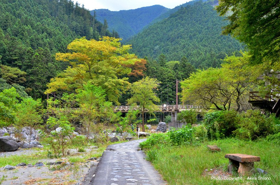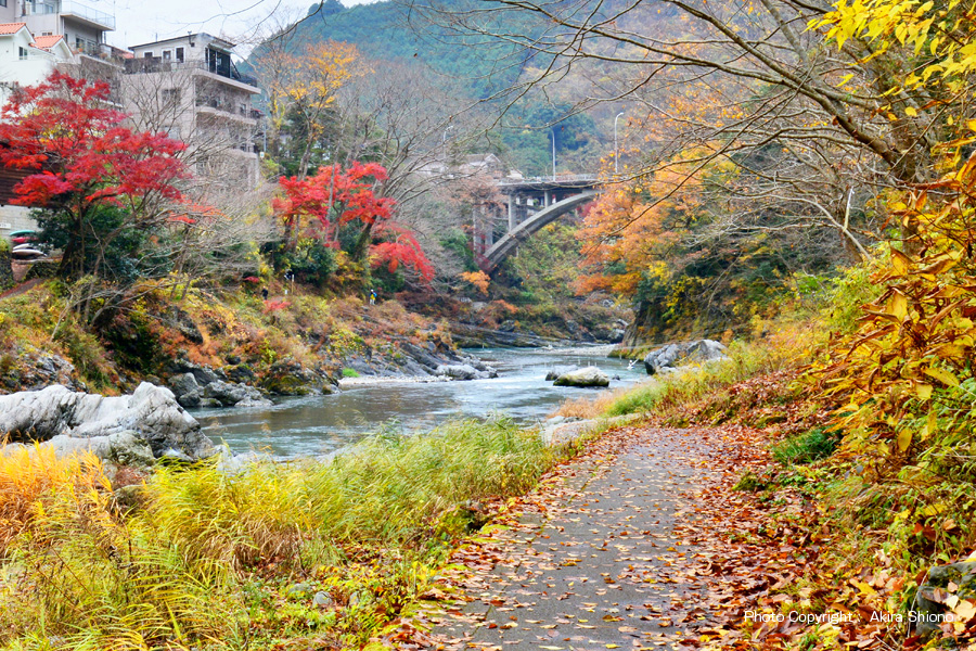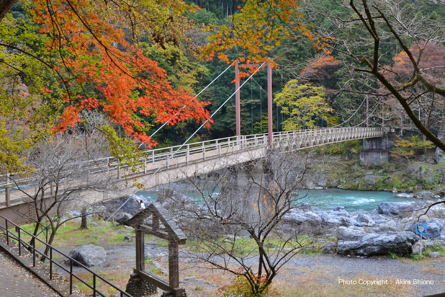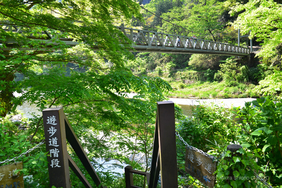 東は軍畑、西はせせらぎの里美術館あたりで終わる御岳渓谷遊歩道は、沢井の楓橋〜鵜の瀬橋の先の今は無き「御岳小橋」の手前まで南北2本が通っています。特にこの鵜の瀬橋南側の御岳渓谷遊歩道は現在、下流の楓橋の近くにある「寒山寺」まで通ることができます。 ![]() 鵜の瀬橋で御岳遊歩道の行き来が出来ます。