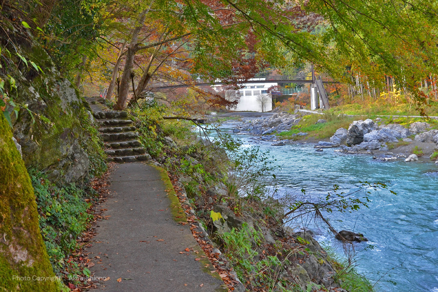 玉堂美術館から先の遊歩道が繋がりますが、場所によって山中に入ったような自然のままの景色が広がります。 ![]() この辺りから南側遊歩道は川沿いに移り、御岳発電所まで続きます。 ![]() 御岳渓谷遊歩道の南側の御岳発電所近くで杣の小橋も見えます。 御岳渓谷南遊歩道/鵜の瀬橋東方面 トップへ