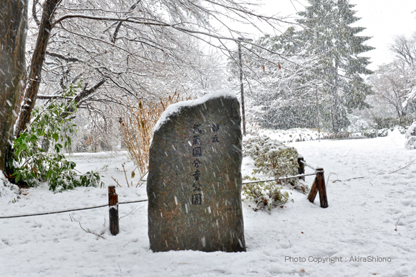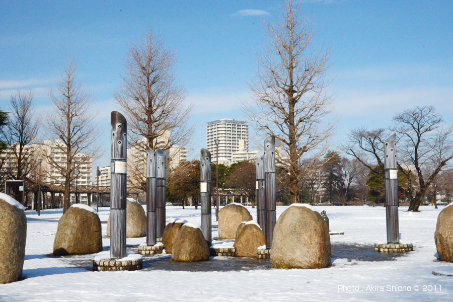 ![]() 泉地区南側にはもと鉄道学園の記念碑としてオブジェがあります。中央の円形広場の晩秋の夕暮れの景色。 武蔵国分寺公園の雪景色 武蔵国分寺公園 南側/西元地区 国分寺駅南口と府中街道の泉町交差点に繋がる、多喜窪通りを跨いでいる“ふれあいばし”を渡りきると違った景色がひろがります。こちらは広い丘というかんじで緩い勾配の丘が広がっていて、周囲に歩道が巡っています。泉地区の広場とまた違がった景色になっています。西元地区の南側は“野鳥の森”があり、ウッドチップを敷き詰めた木々の間の遊歩道が心地よく楽しめます。さらに南は国分寺崖線になっていて、武蔵国分寺や、武蔵国分寺跡、真姿の池、お鷹の道があり各地から観光客が訪れています。