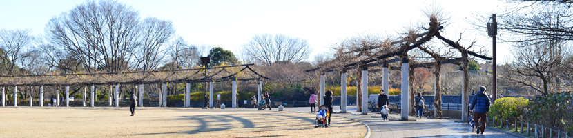 ![]() 武蔵国分寺公園の泉地区と西元地区を繋ぐ「ふれあいばし」から見た東西の景色。