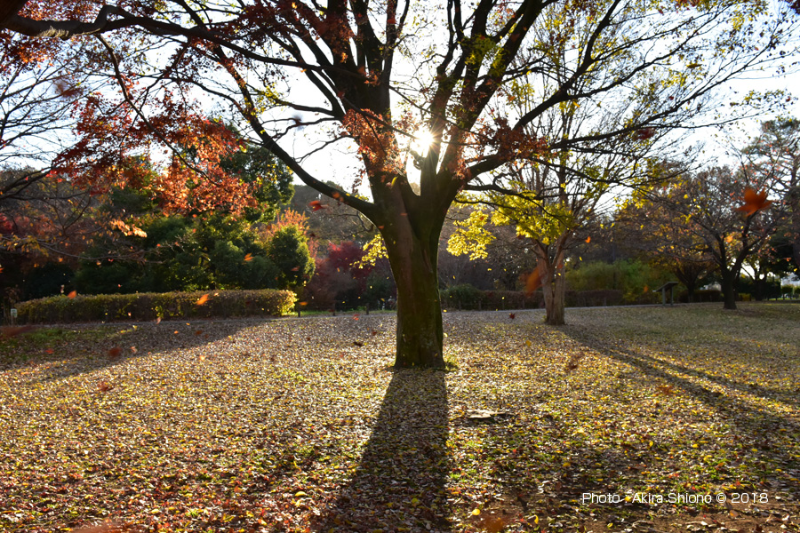 強い風が吹き荒れ、紅葉した葉が横に飛んでいきました。 公園の木々の葉は殆ど落ちました 2017.12 トップへ
