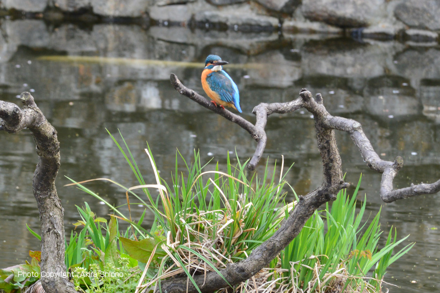 ![]() 左ー武蔵の池の島には、カワセミが枝にとまっていました 右ー池のそばで餌の小魚をじっとして探しています。