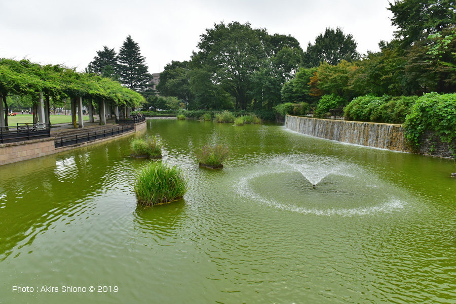 緑色になった武蔵国分寺公園の武蔵の池 2019.9.3 トップへ ![]() 武蔵の池は植物性プランクトンの大発生で、緑色に濁っていました。 ![]() ふれあいばしから見た武蔵の池の東側の景色。