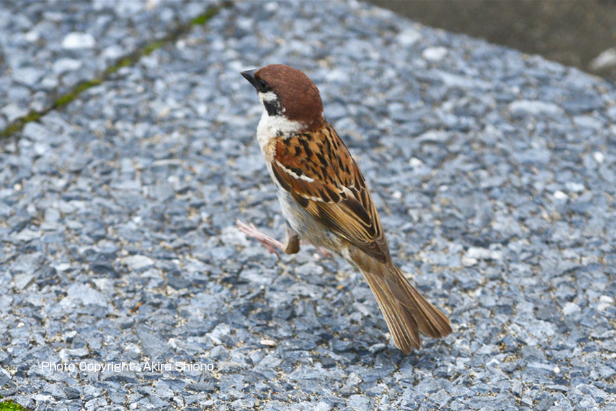 スズメといえば軒下にいたり、高いところにいるイメージがあります。しかし、ここ都立武蔵分寺公園では、何方かが餌でもやっているのでしょうか?平気で人間のそばを跳ねながら移動したり、人が通る橋の欄干に居たりあまり警戒していないようです。カルガモの赤ちゃんを探しに“であいばし”の東側の池の方に目をやってみました。池の中にはカワセミがとまれるように、木の枝を止まり木として何ヶ所も作られています。小魚は群れでたくさん目にしましたが、この小魚をえさとするカワセミは暖かくなってからは見ることが出来ませんでした。