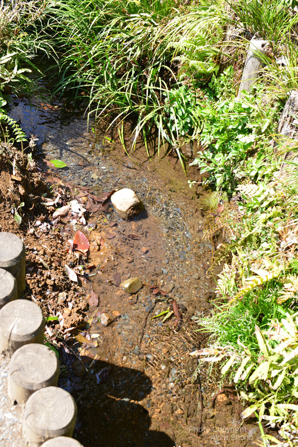 ![]() 奥が真姿の池湧水で、奥にある野菜産直所 国分寺崖線から湧き出た清水はここで溜められて流れます。 真姿の池湧水群 トップへ 関連書籍 上の写真はお鷹の道の真姿の池の入り口で、左手(入り口左側)に東屋(休憩所)があります。「お鷹の道湧水園」から流れ出た西からのわき水が「真姿の池湧水」から流れ出たわき水とこの東屋辺りで合流します。一番上の右の写真は真姿の池側の国分寺崖線から湧き出る「真姿の池湧水」から流れてくる水路です。