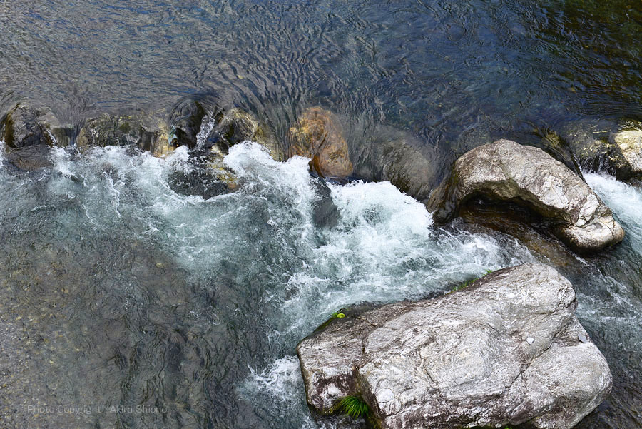 神路橋の橋上から上流側の直下。天候が荒れていないので、水が透き通っています。
