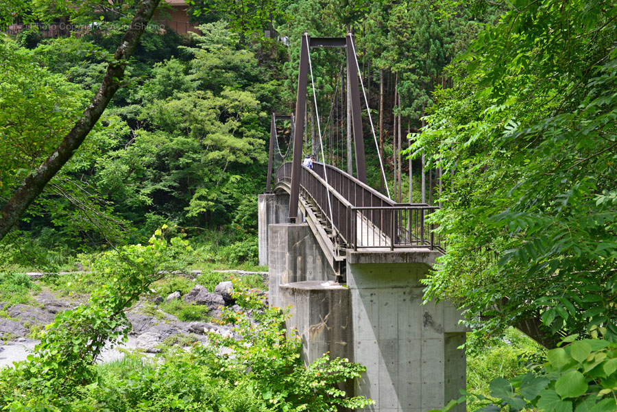 新緑の鵜の瀬橋から御岳小橋