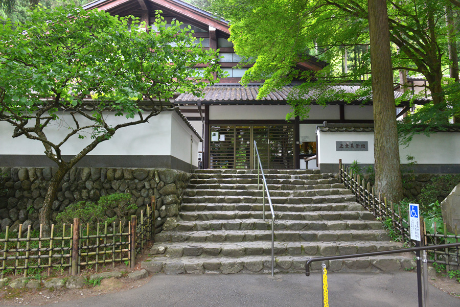 左ー上の分岐路を手前(道標の玉堂美術館方向)に進むと大岩のある美術館西に出ます。 右ー道は2又になりますが、右は玉堂美術館西側の景色。 川井玉堂美術館 ▲top