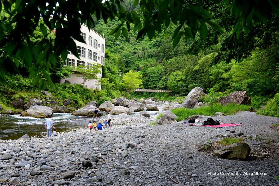 6月中旬の御岳遊歩道右岸/御岳橋 御岳渓谷遊歩道~御岳山入口の路 御岳山周辺の見どころ 御岳小橋下流右岸の「岩壁の遊歩道跡」 新緑の御岳渓谷遊歩道杣の小橋~御岳小橋2019年の台風15・19号で御岳小橋は流失しました。御岳渓谷遊歩道は一部が通行止になっています。 御岳橋の袂へ 開けた右岸の河原 ▲top ![]() 鵜の瀬橋から右岸の遊歩道下流へ進み山道を抜けると、一旦御岳橋直下の河原へ出ます。正面に御岳小橋が見えます。
