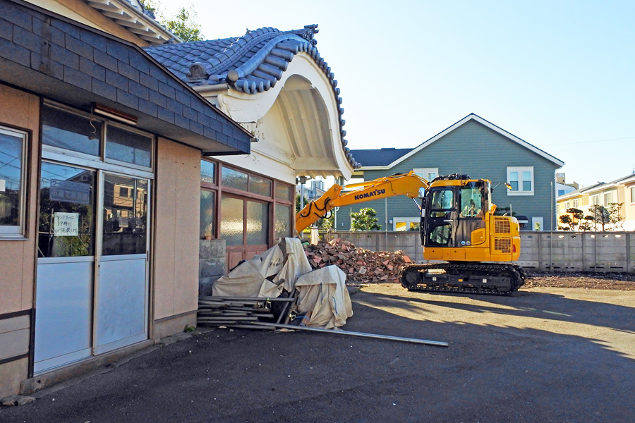 解体される東恋ヶ窪の銭湯「孫の湯」 移 動: 孫の湯エリアの解体 建設時の時代背景と環境 孫の湯の解体 母屋の瓦の取り外し 煙突のみ残った風景 母屋の瓦の取り外し 更地の風景 開発基本計画案内板 完成間近の仮称村越マンション リンク: 孫の湯(東恋4) 養老の滝北口店(本町3) 星野模型店(本多1) 山崎商店(東元3) はたまん(本町2) 梨花苑(南町3) 白山房(本町3) 国分寺百貨店(〃) 解体前の「孫の湯」 東恋ヶ窪に現存の銭湯の解体 トップへ