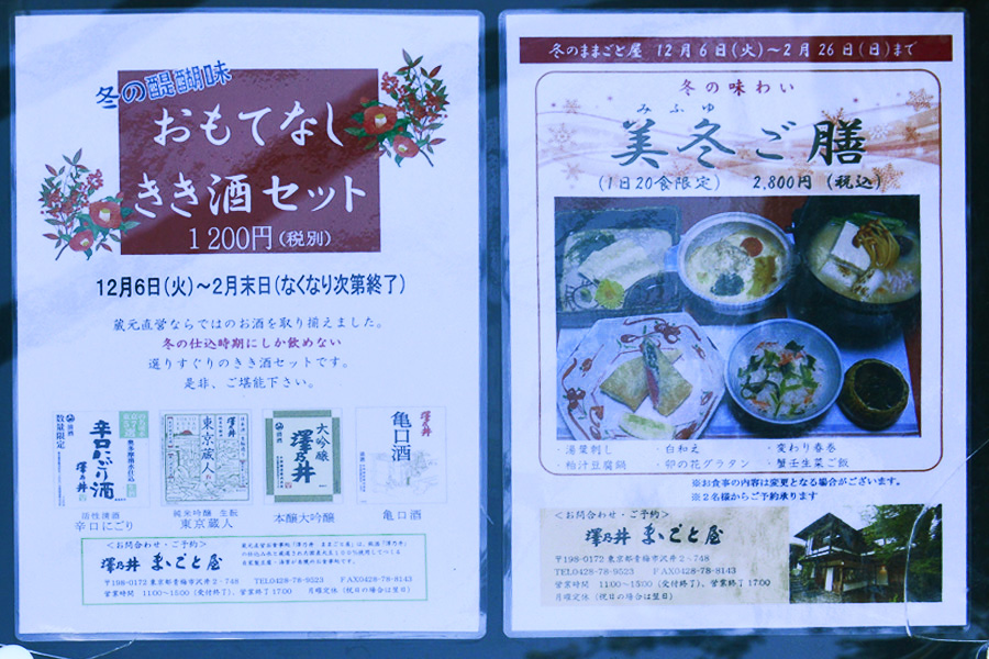 豆腐懐石まゝごと屋/沢井駅周辺 移 動: 豆腐懐石料理 まゝごとや 季節の献立 御岳渓谷遊歩道 リンク: 青梅の名水:小澤酒造 澤乃井園 豆腐懐石まゝごと屋 楓橋 清流を見下ろす寒山寺 櫛かんざし美術館