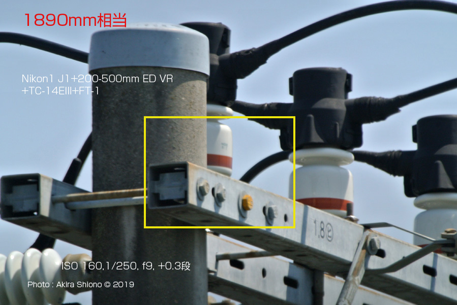 ![]() Nikon1 J1とFT1にニコン200-500mm f5.6+1.4xの1890mm相当と一部拡大部分 FT1+70-200mm+テレコン1.4x参考画像