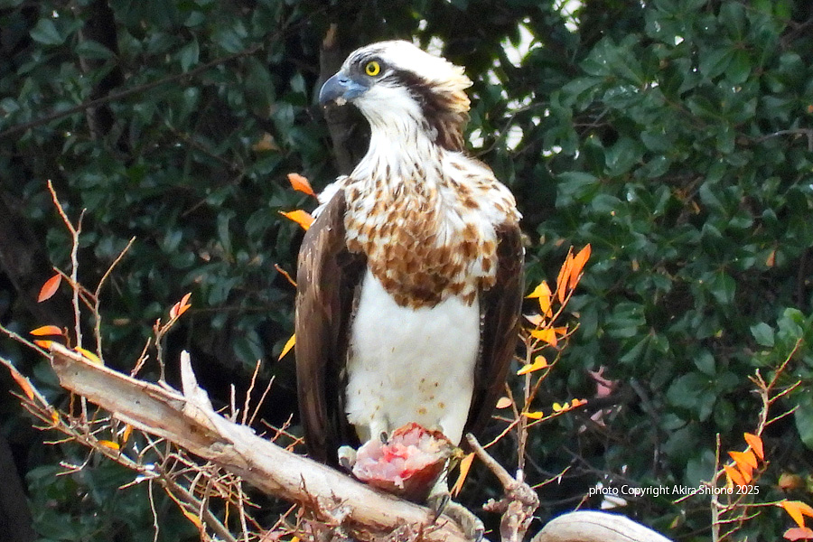 対岸の髙枝に捉まり獲物を食べるミサゴ 2026.1.4 トップへ 対岸の髙枝に捉まり獲物を食べるミサゴ 2025.12.21 トップへ 70m先の髙枝に捉まる前のミサゴ 2025.1.19 トップへ 150m先の杭の上で魚をちぎって食べるミサゴ 2025.1.26 トップへ