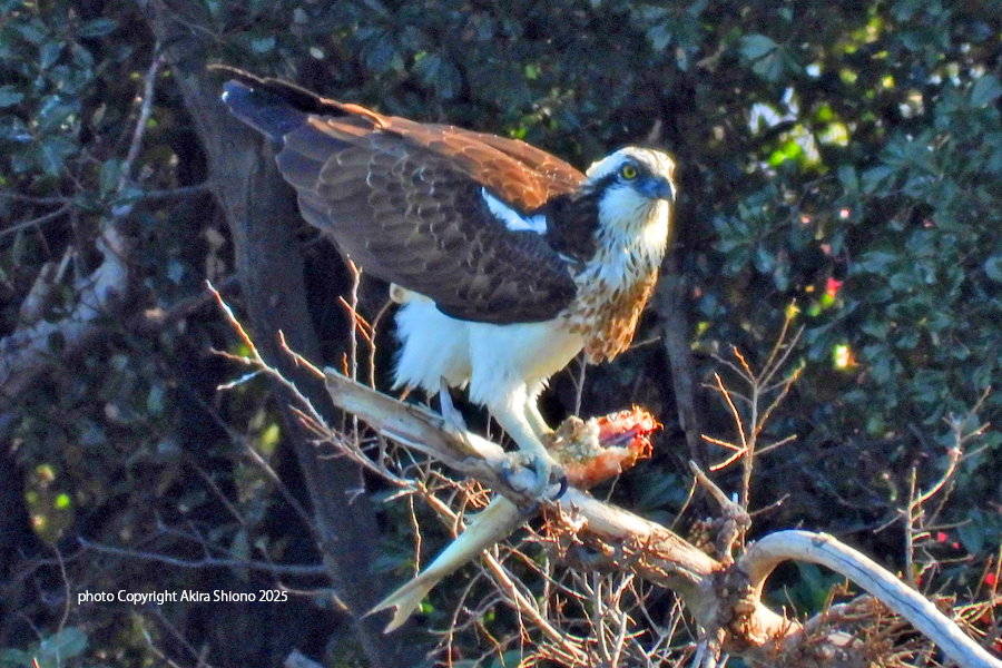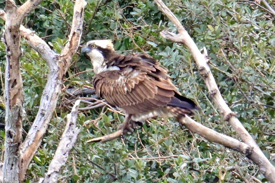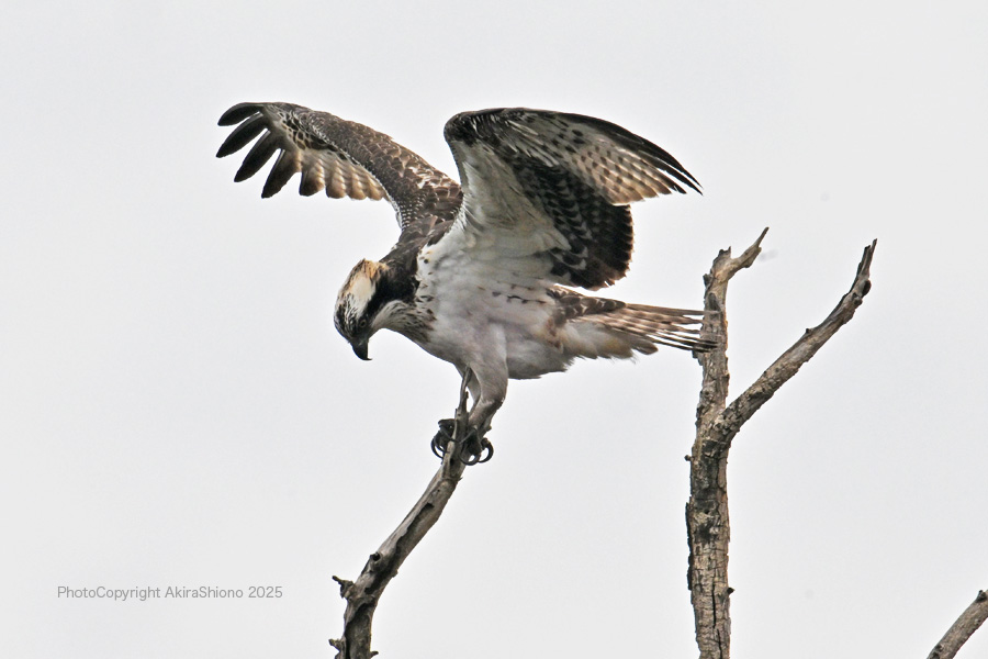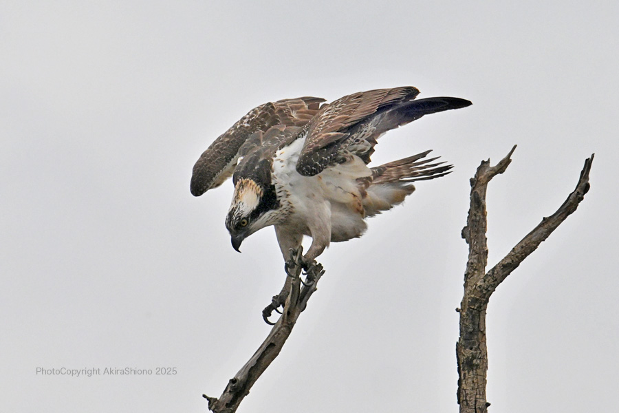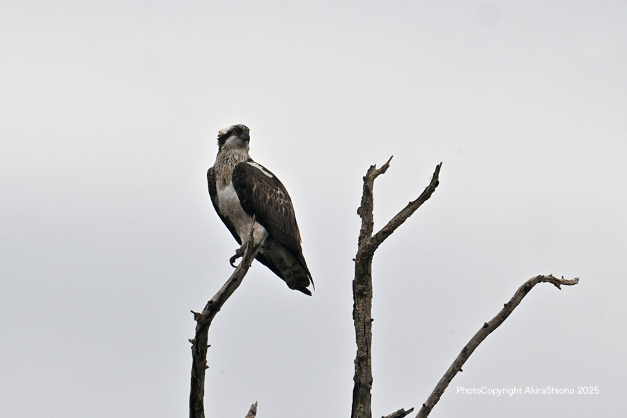 隣の枯れ木に移動するミサゴ 撮影:NIKON Z50II+TC2.0+Z400mmf/4.5S 1200mm FX:LサイズISO 900 1/1250 f/16 0段 手持ち撮影 トリミング
