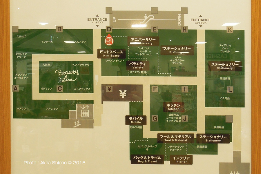 ここ「ミーツ国分寺」の目玉である「東急ハンズ」が国分寺にやってきました。わざわざ新宿や渋谷に出かけていた方には朗報といえるでしょう。当然面積は叶いませんので、機械工具などのものはありませんでしたが、ハンズらしい商品の品揃えを楽しむことが出来ます。この「ミーツ国分寺」4階の約半分のフロアーを使用しているので品揃えも十分と感じます。取扱商品もハンズのポリーシーをもった商品ばかりで見ているだけでも楽しくなってきます。やはり特徴のある雑貨やステーショナリー、バラエティ商品、生活用品、美容・健康用品、コスメ、カジュアルバックなどが取り揃っています。左の「FLOOR MAP」はクリックで拡大します。
