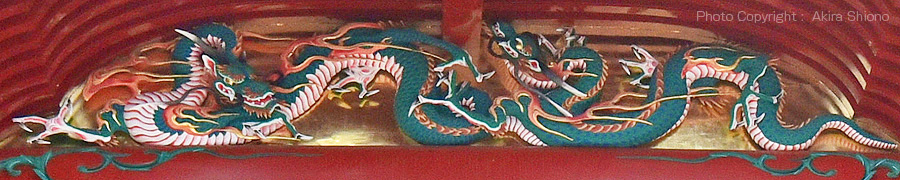 彩色及び漆工事後の拝殿上の彫り飾り トップへ