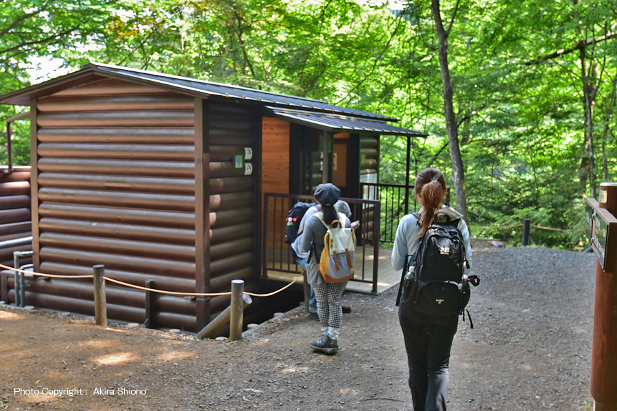 長尾平から天狗岩を経由して、ロックガーデン、綾広の滝を通り天狗の腰掛け杉を越すと再び長尾平園地に戻ってきます。ここから御嶽神社までは0.4kmで、参道の途中に繋がります。
