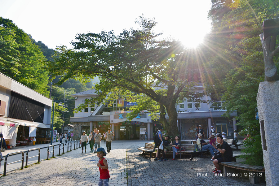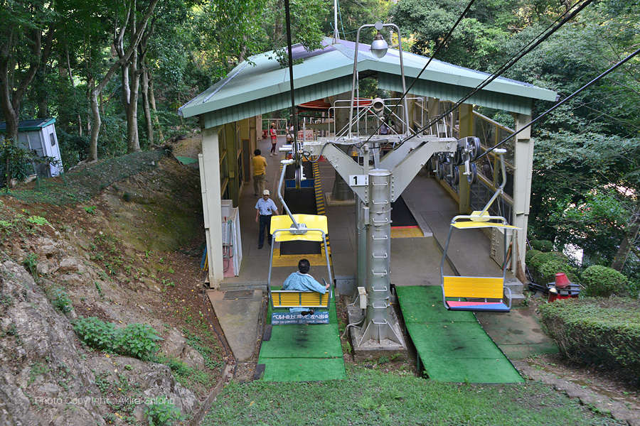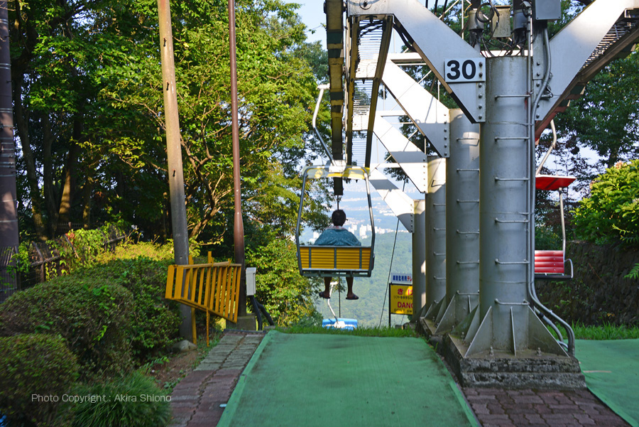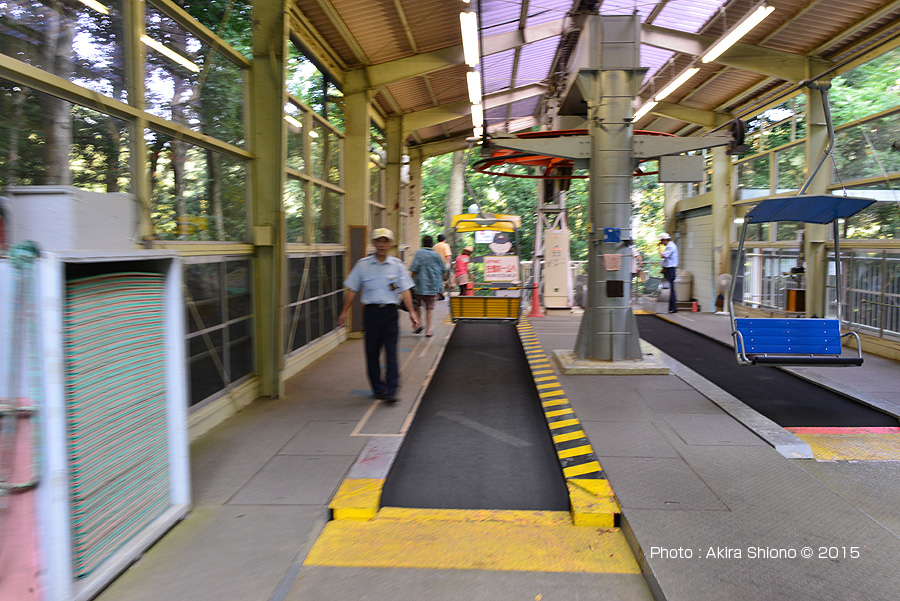 このところ午後になると、局所豪雨が多いですが、この日は空は安定していましたので山上駅からリフトで降りました。エコーリフトは登山電車と違い、木立を感じながら開放感があり、木立の間からの景色もなかなかのものです。乗車券は清滝駅で登山電車の往復券を購入しましたが、下りはこの券でどちらでも利用できるとのことです。