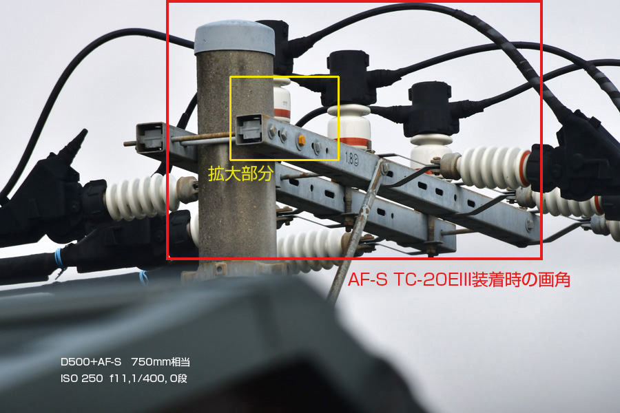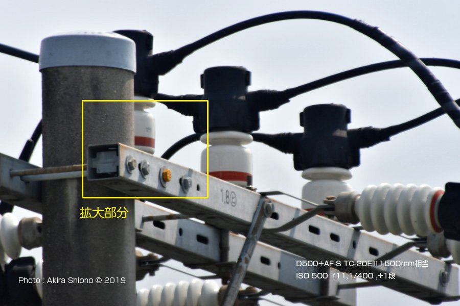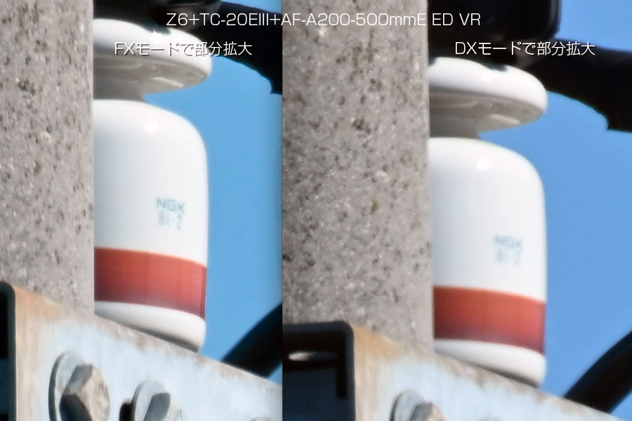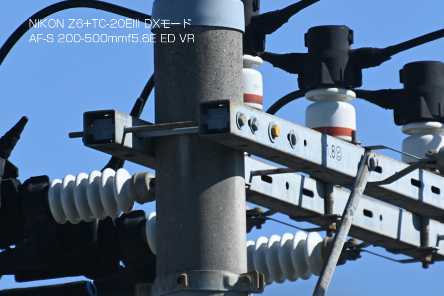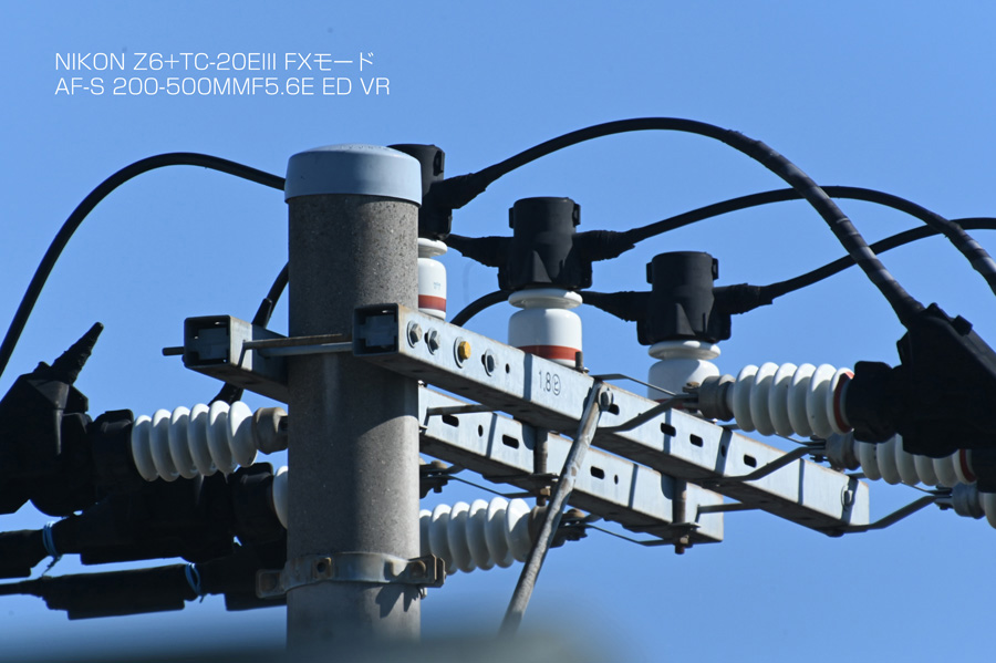 Z6が来るまで、2xテレコンは手持ちのレンズでは70-200mmf4G VRしか出番がありませんでした。TC-14EIIIは、F値がf4まで後ろ玉が2cm程度引っ込んでいるレンズが対象です。標準〜超広角レンズまでと低価格の広角〜望遠レンズは、構造上全く装着できないようになっています。 TC-20EIII+FXmode+AF-S 200-500mmf5.6E ED (1,000mm相当) TC-20EIII+DXmode+AF-S 200-500mmf5.6E ED (1,500mm相当) FXカメラでDXモード撮影した時の画像の変化
