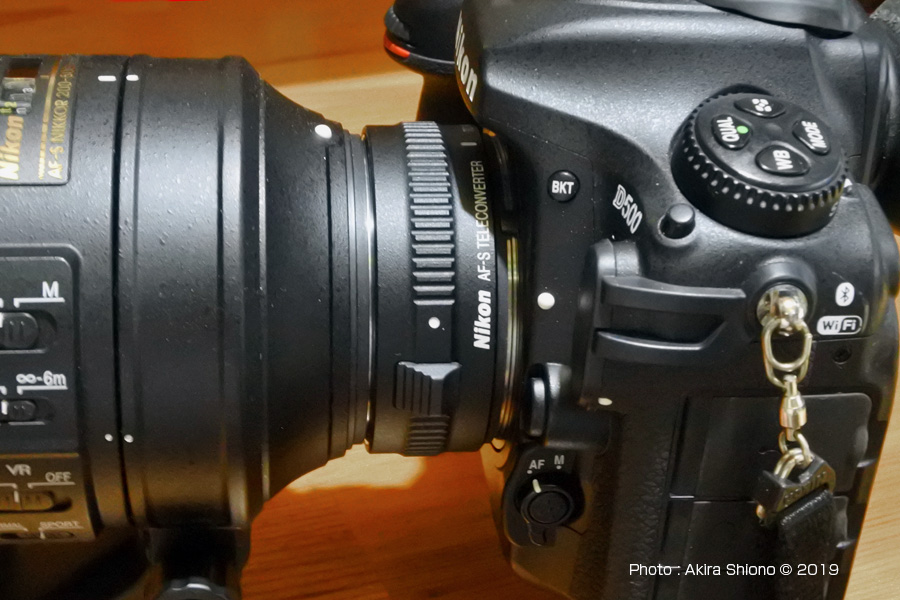 TC-20EIIIテレコンバーターはf4までの主に望遠レンズ用(使用可能レンズ)で合成f値がf8対応のカメラまではピント合います。しかしf5.6レンズに使えるテレコンは1.4Xまでです。f5.6レンズに2.0x装着するとf11を越え、ほとんどのカメラでは合焦が迷いオートフォーカスは使えませんでした。しかし明言していませんがNIKON Z6では、コントラストが高いなど条件が良い場合オートフォーカスが効きます。 ニコン200-500mm 1 2 3 次は・テレコン装着で野鳥撮影 ★★★★ D500実写レポートは、こちらから ★★★★ トップへ 【ニコンデジタル一眼レフサイトリンク】 〔DX(APS-C)一眼レフ〕 ニコン「D500」で体験する“史上最強の被写体捕捉力1/2” ニコン「D500」で体験する“史上最強の被写体捕捉力2/2” 〔amazonでNIKON一眼ボディを調べる〕 双眼鏡・フィールドスコープを見る